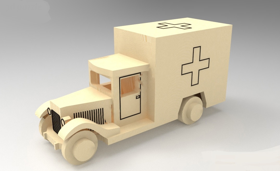Макет машины "Медицина" выполнен в форме стилизованного автомобиля, который символизирует медицинскую тематику. Эта модель будет интересным элементом для сборки и демонстрации, а также может стать оригинальным подарком. Файл для лазерной резки доступен для скачивания в векторном формате, что облегчает процесс изготовления из фанеры.