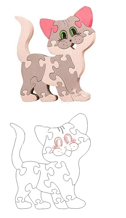 Пазл "Котёнок" представляет собой забавный и милый дизайн, изображающий котёнка в игровой позе. Этот макет создан для лазерной резки и включает векторные элементы, что позволяет легко его воспроизвести. Файл доступен для скачивания бесплатно и предназначен для создания интересного и развивающего игрового элемента для детей.
