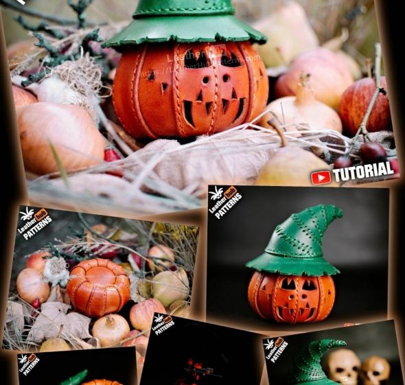 Выкройка кожаной фигурки тыквы в шляпе на Helloween