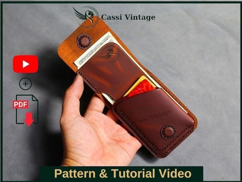 Выкройка: Минималистичный элегантный кожаный кошелек с кожаным узором двойного сложения